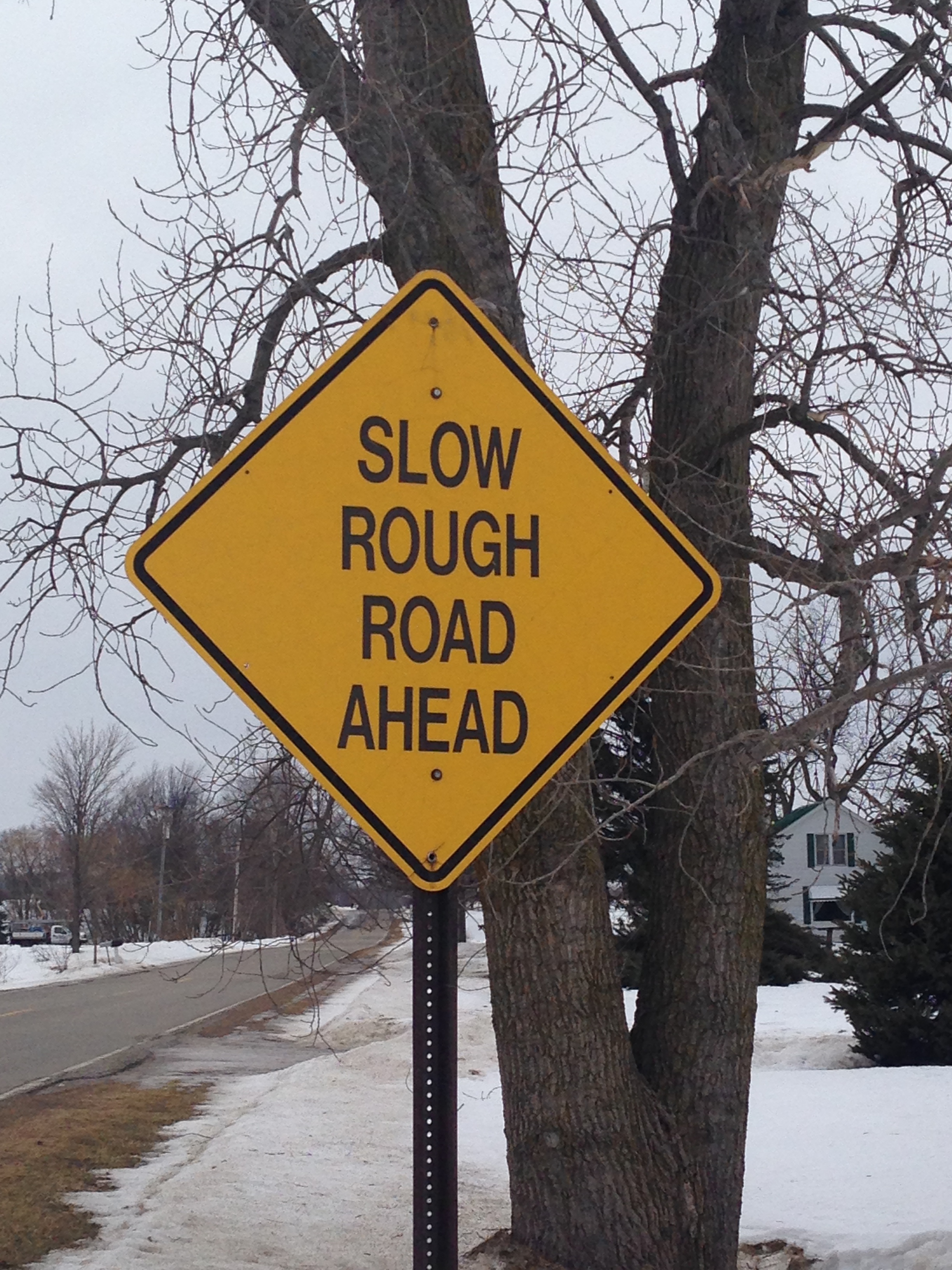 Not too many weeks ago, my family along with an out of state uncle and aunt were driving through here and I remarked that this sign described my life. Slow, rough road ahead pretty much nails it. I meant it to be funny in a self-deprecating way, but there is actually great truth to it and that isn’t bad.