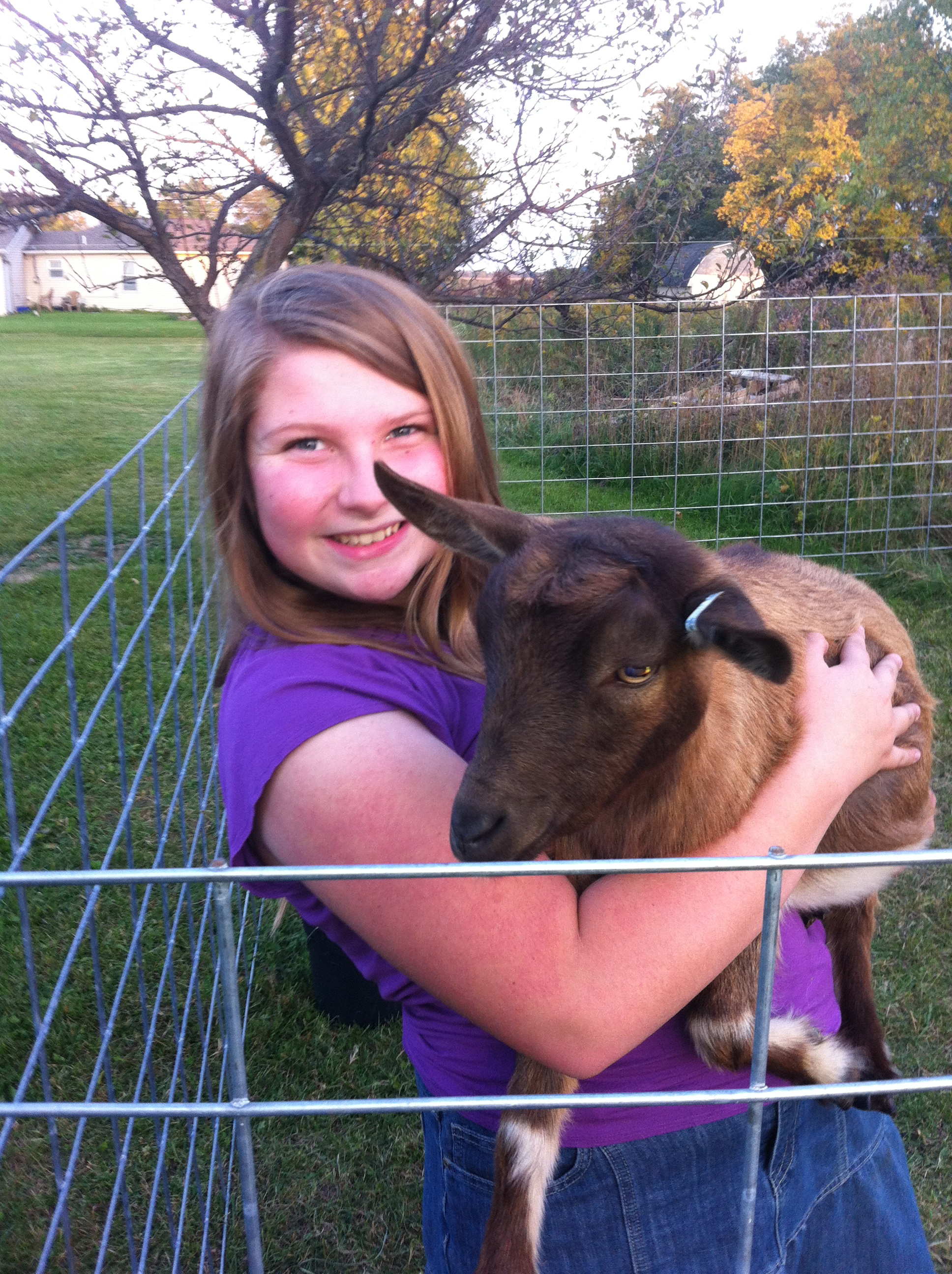 We just built a new pen for the goats. We have nine of them. Four are for sale. Let me know if you want one.